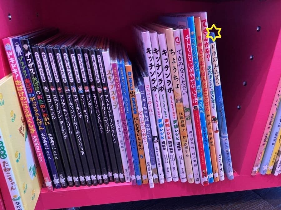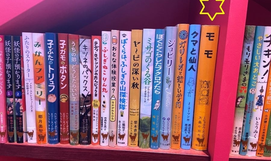 同じくライブラリーで見つけた村上康成さんの本(左、同児童文学館にはライブラリーの担当者に調べてもらった所、沢山の村上康成作品がありました。尚、作者別の配列や、自分で蔵書を調べられる器械などが設置されていたらと思いましたが、角野英子さんの希望により、沢山の色んな場所で本と出逢えることを想定し、一般の図書館のような作者別やテーマ別の配置はしていないとのことでした。蔵書の検索もライブラリーの担当の方に調べてもらう形になります)。